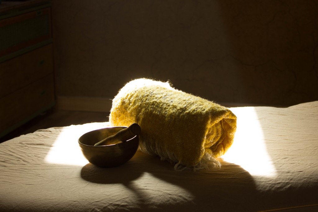La musique accompagne les mouvements que chorégraphient mes mains et il m’arrive parfois d’utiliser le souffle, les sons, les mantras, la voix ou les instruments en complément du massage.