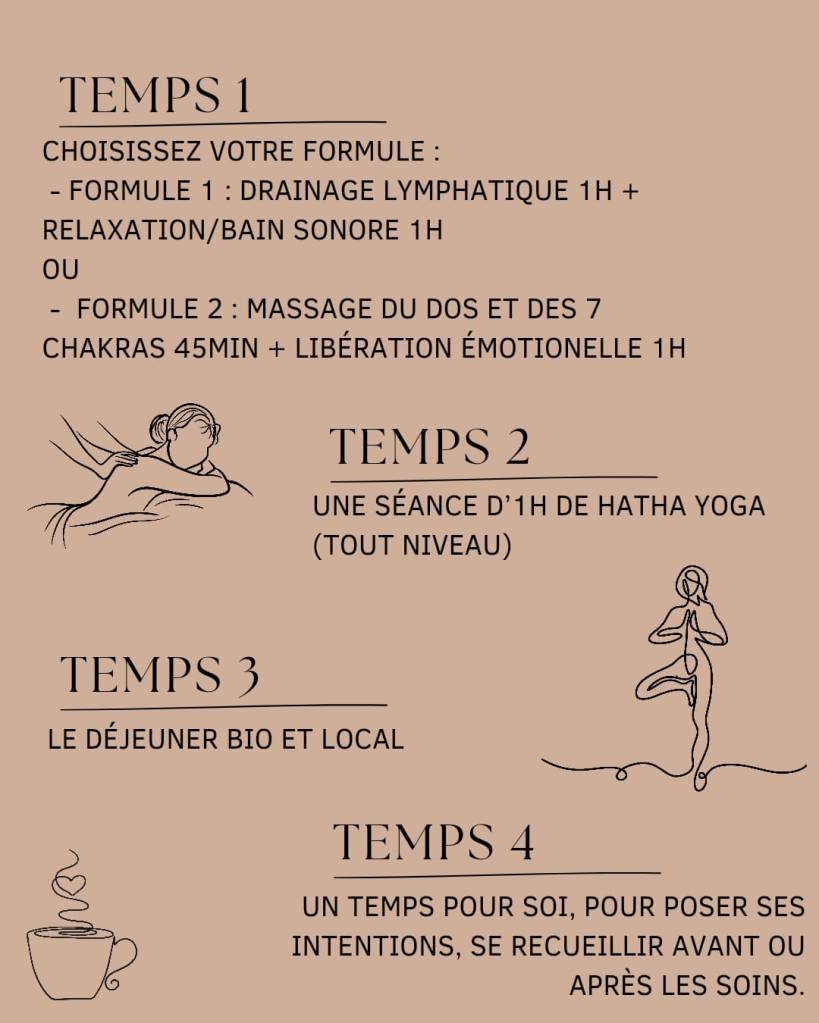 Formule yoga et massage corps 2h : 1h de yoga + 1 h de massage : 90 euros