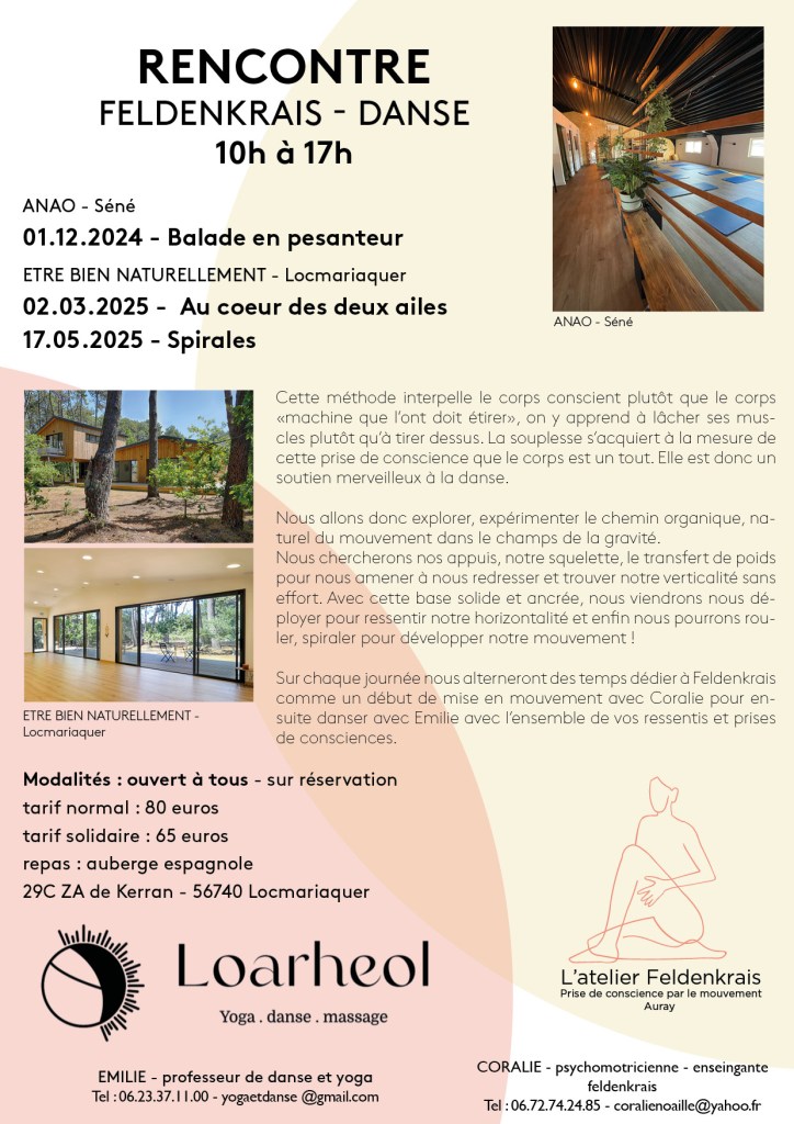 J’aime pratiquer dans le joie et le partage, dans le plaisir de sentir le corps se délier, se déployer dans l’espace, vibrer, s’agiter le cœur palpitant, puis jaillir et nous étonner des chemins et sensations possibles…