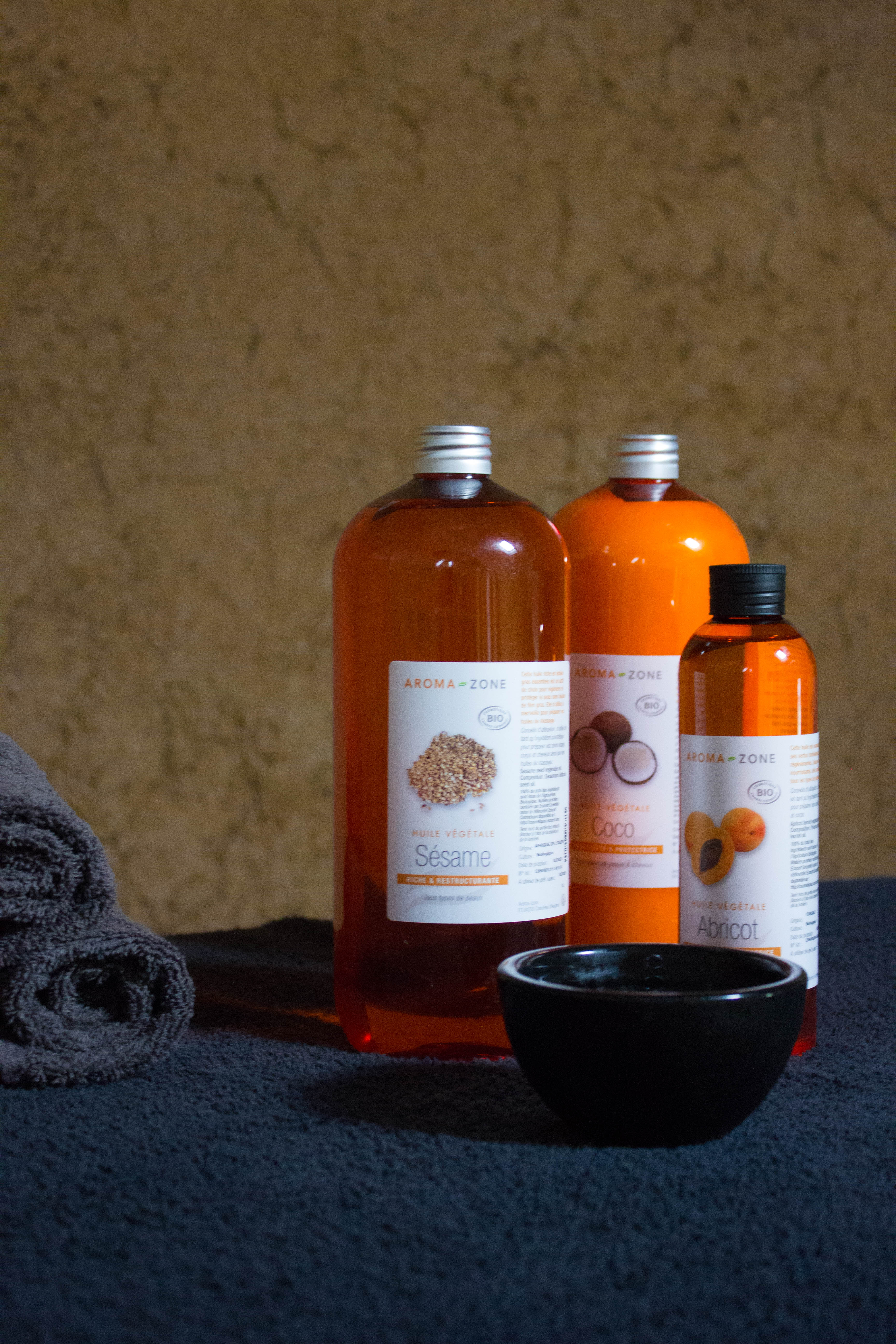 Les huiles végétales bio relaxantes, ressourçantes et enveloppantes que j’utilise, contribuent à faire de ce temps de soin, un moment de retour à soi.